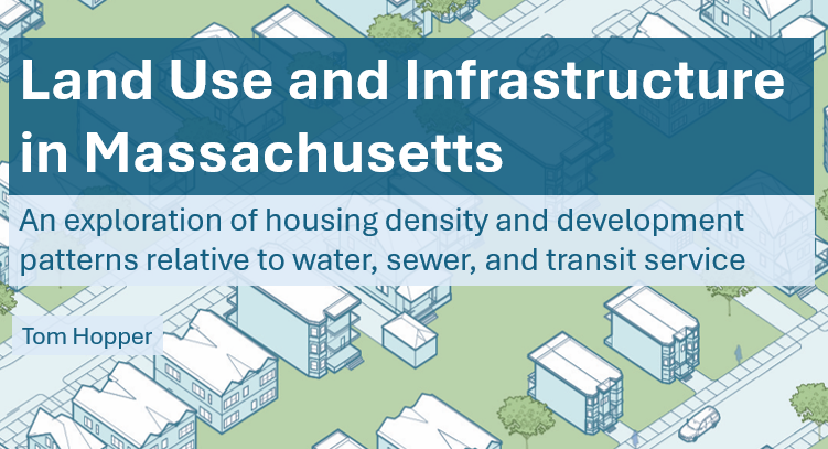 It is good state and regional policy to make the most of infrastructure investments and create walkable and dynamic mixed-use communities where these public assets align. Coordinating housing policy with these systems poses our best chance of addressing the housing crisis while boosting transit ridership, reducing car usage and carbon emissions, and managing environmental impacts. Our analysis indicates that Massachusetts’ prevailing development patterns demonstrate more efficient land use in places with infrastructure while also signaling there are remaining opportunities to concentrate development in these areas.