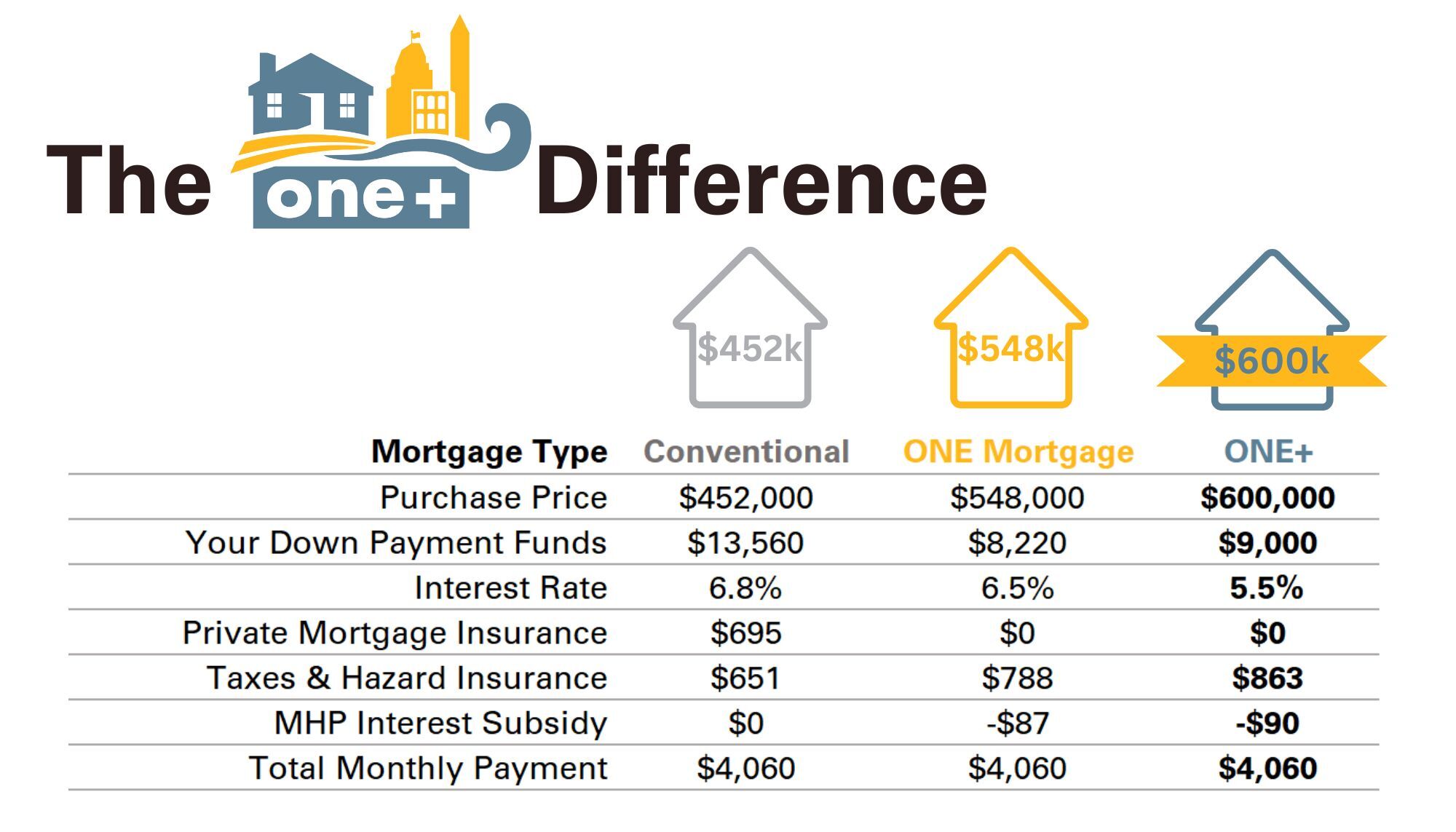 The ONE+ Mortgage Program builds on the affordable features of the ONE Mortgage Program to deliver affordable financing solutions for low- and moderate-income first-time homebuyers currently residing within 29 Massachusetts communities. Specifically, the ONE+ Mortgage Program adds a permanent interest-rate discount, down payment and closing cost assistance.